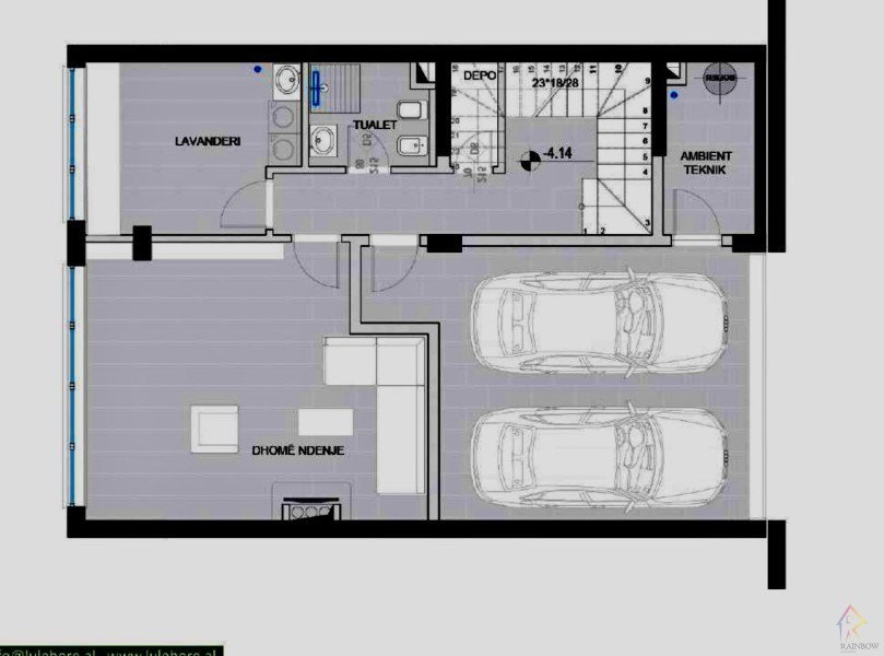 Kati nentoke perbehet nga 2 garazhe,ambient teknik,depo, banjo, lavanteri si dhe ambient ndenjeje/palester.