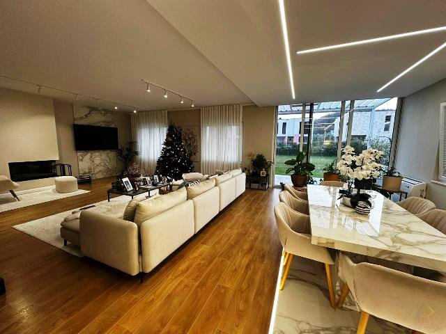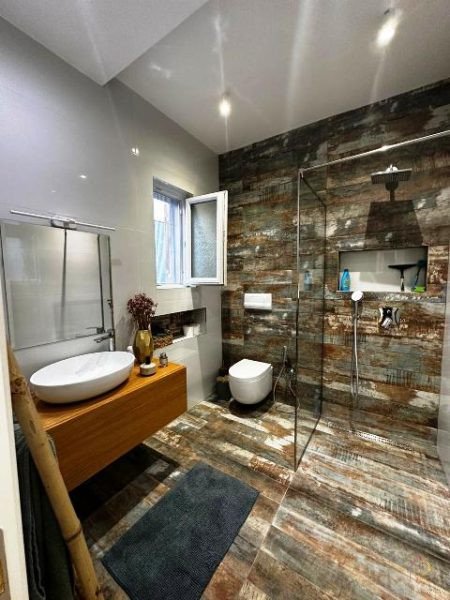 Shitet vile perfekte 15 min nga Tirana, prane fshatit Tagan apo poshte kalase se Petreles. Vila ka 3 kate banimi dhe nje oborr simetrik prej 1000 m2. Ajo ka punime cilesore si, fasade termoizoluese, cati, verande, dritare termale dhe oborr te gjelberuar me lule dhe peme frutore te ndryshme. Gjithashtu edhe punimet e brendshme qe nga hidrosanitaret, oxhaku me dru, dysheme parketi, mozaiku fantastik me gure apo arredimi total jane nder me cilesoret. Organizimi i hapesirave dhe arredimi i tyre eshte perfekt duke ofruar prakticitet dhe komoditet si ne ambientet e ndenjes po ashtu dhe ne ato te gjumit apo relaksit. Ne katin perdhe ndodhet salloni i madh i ndenjejes me oxhak funksional druri, kuzhina dhe kendi i ngrenies, dhome-depo, parabanje dhe tualet. Kati i pare formulohet ne sheshpushim nga i cili kane akses 3 dhoma gjumi, dhome hekurosje, parabanje-banje dhe 1 ballkon. Dhoma matrimoniale ka garderobe dhe tualet te pervetshem. Kati i fundit apo papafingo formulohet ne nje sheshpushim nga i cili ka akses nje tualet i bollshem, dhe nje apartament /studio me garderoben e tij. Vlen per tu theksuar qe vila ka orientim lindje, jug dhe perendim si dhe distance te lire si para po ashtu dhe nga pas saj. Oborri i saj eshte i mjaftueshem per te ndertuar pishine, kuzhine verore apo kend lorjrash per femije.