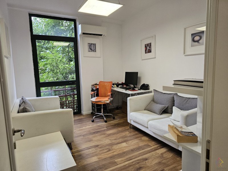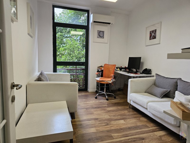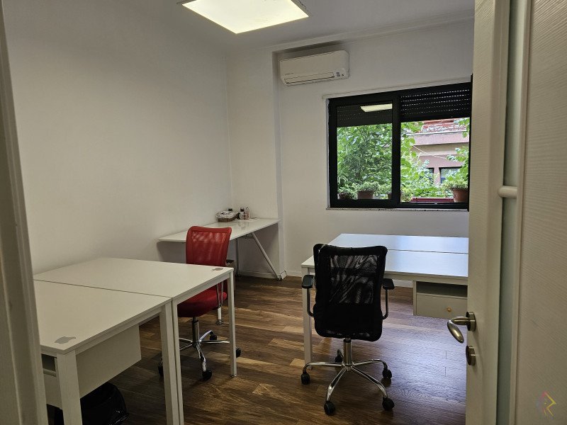 Ambient per zyra me qira ne nje zone prestigjoze te Tiranes. Zyrat ndodhen ne nje ndertese te mire, me hapesira te bollshme dhe qetesi . Planimetria esht te organizuar ne nje korridor ku lidhen te gjitha ambientet, ku mund te vendoset dhe recepsioni, 4 hapesira pune, 1 tualet, 1 depo, dhe 2 ballkone.